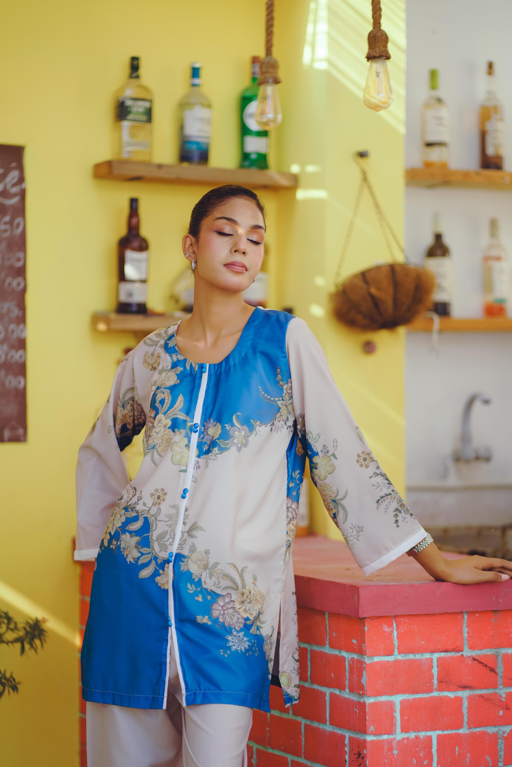 Hoorain embodies calm sophistication with its soothing blue and beige tones on airy Swiss Lawn. Light yet luxurious, this 2-piece stitched co-ord offers both comfort and refinement. Its minimalist detailing and fine fabric make it a perfect choice for casual daytime wear or elegant get-togethers.